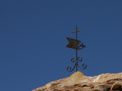 Una veleta es un dispositivo giratorio que consta de una placa vertical que gira libremente, un señalador que indica la dirección del viento y una cruz horizontal, que indica los puntos cardinales, que está ubicada generalmente en lugares elevados y su diseño puede ser muy variado. La veleta o giraldilla ocupó desde muy antiguo los campanarios de las iglesias y por imitación de las iglesias surgen en los edificios civiles y en las casa particulares. Primitivamente estas veletas estaban coronadas por un gallo, uso que se está perdiendo.¿ Cuál es el significado y origen de la costumbre de coronar las veletas con un gallo?.Hay varias explicaciones, si bien , posiblemente casi todas ellas están basadas en su carácter simbólico, incluso anteriores al cristianismo, ya que sabe que existieron veletas con gallos en la Grecia clásica.